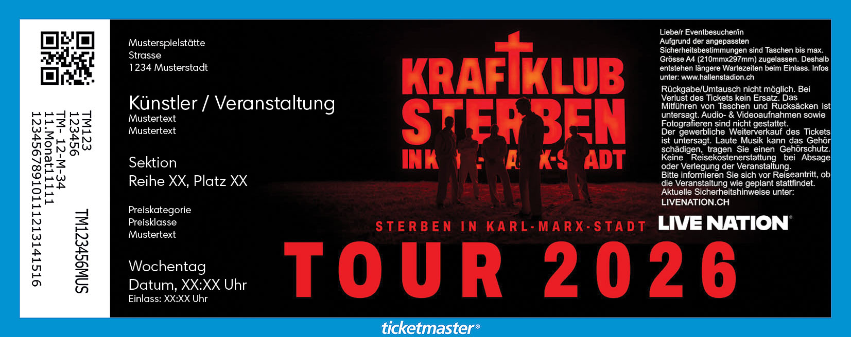 Rollstuhlplätze: Bitte buchen Sie die Rollstuhlplätze per Mail mit Angaben zu Ort, Datum der Veranstaltung, Ihrer Telefonnummer (tagsüber erreichbar) und Anzahl Rollstühle: rollstuhl@ticketmaster.ch